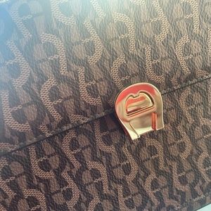 Authentic AIGNER Brown Signature Coated Canvas Genoveva Top Handle Bag