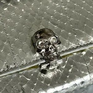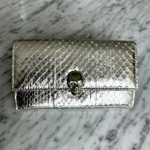 Authentic Alexander McQueen wallet in silver python snake skin. Skull clasp with jewel eye detail. No box or dust bag.