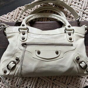 Authentic BALENCIAGA The First Hand Bag Ivory Leather 2005 Awesome