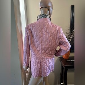 Beautiful pink! Authentic Burberry quilted jacket size med buttons are tarnished as you can see but really good condition !
