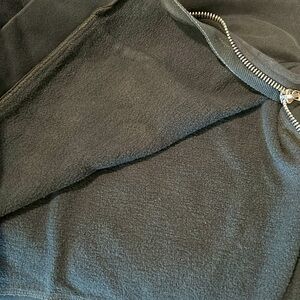 Zipper sides , kangaroo pouch, hood with tie. This hoodie is absolutely amazing quality. Zippers are silver.