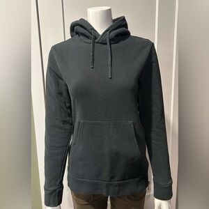 Authentic Balmain hoodie with side zippers. The color is a very deep blue green. Very striking color.