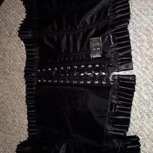 Gothic Black Satin With Trim Waist Training Overbust Corset Bustier Top