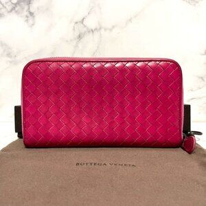 Authentic Bottega Veneta Intrecciato Nappa Zip Around Wallet Pink