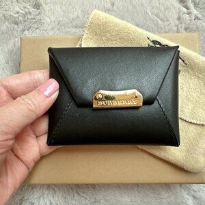 Authentic Burberry Black Smooth Leather Claxton Coin Case