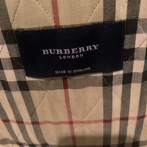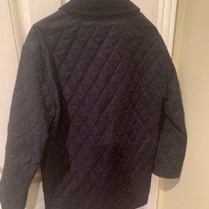 Long sleeve quilted jacket in navy. Corduroy trim on collar.