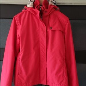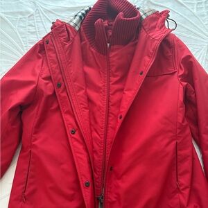 Authentic beatiful red Burberry jacket with hood. Size M. Great condition. Worn a few times.