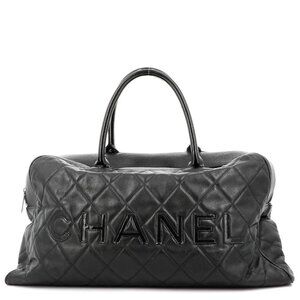 Authentic CHANEL CC Caviar XL Travel Bag Bowler Bag Tote Weekender Boston Duffle