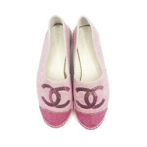 Authentic CHANEL CC Logo Canvas Pink Sequin Espadrilles Flats Shoes 38