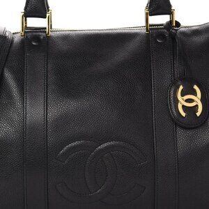 Authentic CHANEL Caviar Leather Large Bowler Bag Travel Bag Duffle Black CC Tote