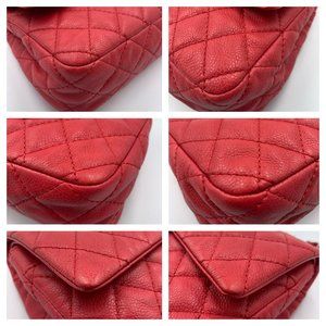Authentic CHANEL Caviar Red Double Flap Shoulder Bag Silver Hardware