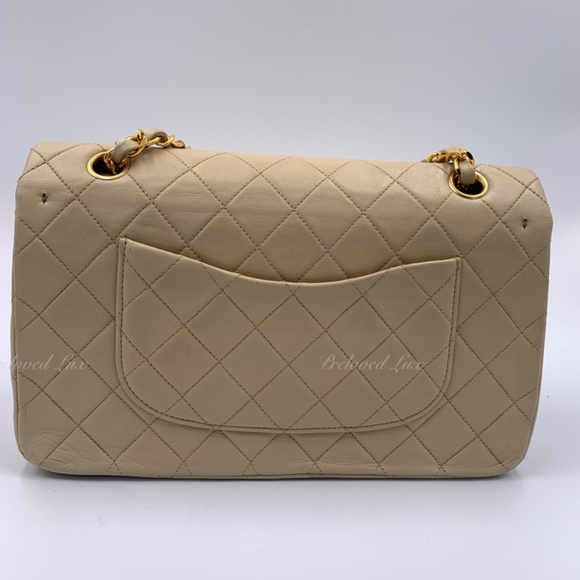 Authentic CHANEL Classic Lambskin Double Flap Medium Shoulder Bag - Light Beige