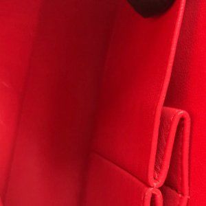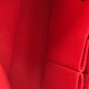 Outside: Overall good condition. No rubs on the corners -one corner with darken spot which can only see with certain angle - see photos. Small area of black dots on leather - see photos and video. Fine scratches on silver hardware that is not noticeable. Structure of this bag is good. No sticky feeling on patent leather. Color very consistent throughout the bag except a few black dots on patent and one darken spot on one corner.