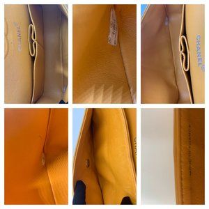 This beautiful vintage double flap bag has shiny silver plated hardware. This is a very unique color that is orange / yellow tone. Please review last few photos for pictures under natural light. Unicorn, rare color.