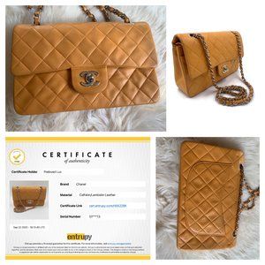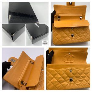 Authentic CHANEL Small Classic Double Flap Shoulder bag - Orange - Silver Hardware Vintage