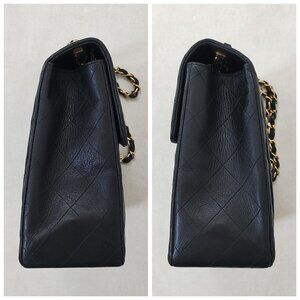 Authentic CHANEL Jumbo Maxi XL 24K Gold Flap Bag Lambskin Chain Shoulder Black