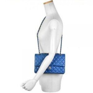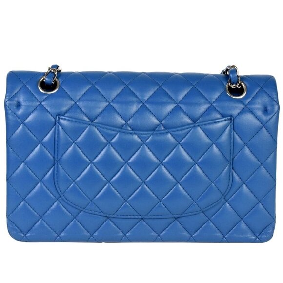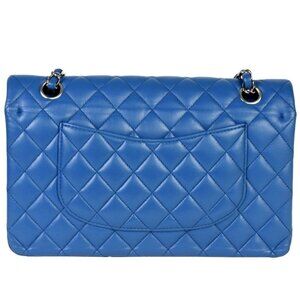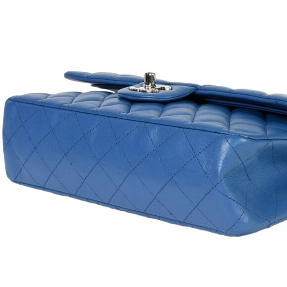 Authentic CHANEL Lambskin Quilted Medium Classic Double Flap Bag 25 Blue Purse