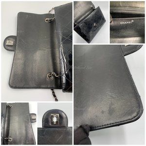 Authentic CHANEL Black Patent Leather Jumbo Size Flap Shoulder Bag Crossbody - Silver Hardware