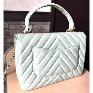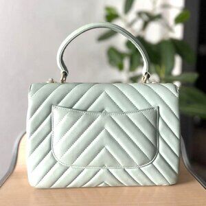 Authentic CHANEL Trendy Chevron Lambskin Quilted Dual Handle Flap Bag Mint Tote