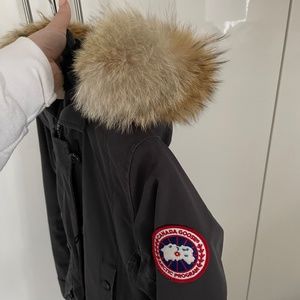 Size xsmall. Model is a size xsmall to small. ▫️ Measurements Laying Flat: ▫️ Pit to pit: 20’’ ▫️ Shoulder to wrist: 26’’ ▫️ Waist: 17’’ ▫️ Length: 36’’ ▫️ Great condition. Some fading. See photos. ▫️ Colour: Navy. ▫️ Retails for $1,550.00. ▫️ Recently dry-cleaned. ▫️ Description: Long and slim-fitting, the Kensington Parka is equally appropriate for strolling a city street or hiking a snowy trail. With smart military buttons, waist-cinching adjustable straps, and recessed rib knit cuffs, the Kensington is a modern take on a traditional style. ▫️ Features: • Fabric: Arctic-Tech With DWR Finish • Insulation 625 Fill Power White Duck Down • Tailored fit • Long-thigh length • Removable coyote fur ruff surrounding a one-way adjustable hood (vertically) with a fleece lining • Heavy-duty rib-knit collar keeps out the cold • Heavy-duty centre front two-way locking zipper • Storm flap over centre front zipper secured with military buttons • Exterior adjustable webbing at waist for a closer fit • Two lower centre back vents secured with Canada Goose embossed snap closures • Two upper handwarmer pockets with fleece lining secured with Canada Goose embossed snaps • Interior left drop-in pocket with Velcro closure • Two lower fleece-lined pockets secured with buttoned flaps • Interior shoulder straps allow wearer to carry over their shoulder • Adjustable cuff for better fit • Recessed heavy-duty rib-knit cuffs #CanadaGoose #Coat #Parka #Down #Designer
