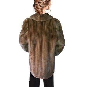 This luxurious and unique mink coat is in pristine and excellent condition. There are no flaws, stains or damage. The fur is very soft to the touch. It's warm and comfortable with a beautiful shine. It is well-kept in a dark, dry, cool place in a garment bag and rack. It is fully lined with front hook enclosures and velvet-lined pockets and padded shoulders. The smooth collar can be worn down for a different look.