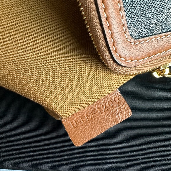 This Celine Small Triomphe Pouch features a coated canvas with trimming in lambskin textile lining and gold-tone hardware.
