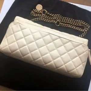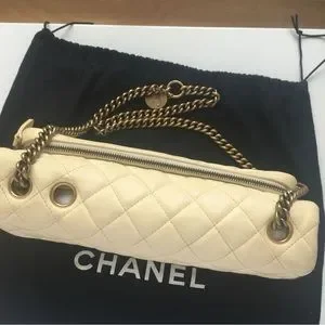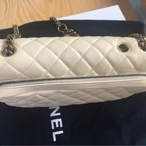 Cream color Chanel bag with brass hardware. Unique piece. Preloved and taken care of.