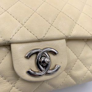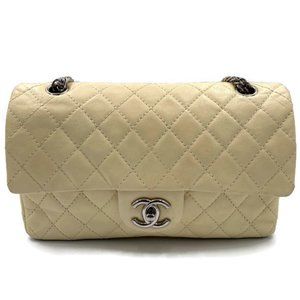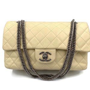Authentic Chanel Beige Calfskin Flap Shoulder Bag