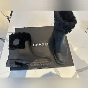 Beautiful leather boot with fur trim and large CC logo. Comes full set, box included. 100% authentic purchased direct from boutique.