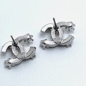 Authentic Chanel CC Earrings Silver With Crystals Brand New