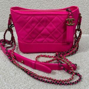 Authentic Chanel Fuchsia Goatskin Small Gabreille Bag