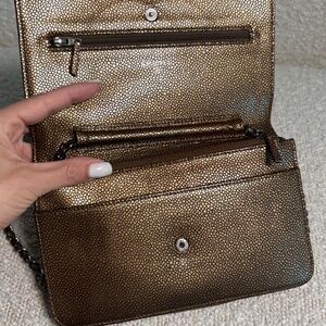 Authentic Chanel Gold Bronze Metallic Caviar Timeless Wallet on Chain Double CC