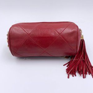 Authentic Chanel Red Mini Camera Bag with Tassel