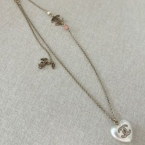 Authentic Chanel White/Gold Tone Pearl Heart Shaped Drop Necklace