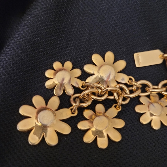 Authentic Coach Flower Key Ring Charming Gold Keychain Fob Enamel Rhinestone