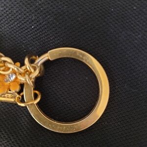 Authentic Coach Flower Key Ring Charming Gold Keychain Fob Enamel Rhinestone.