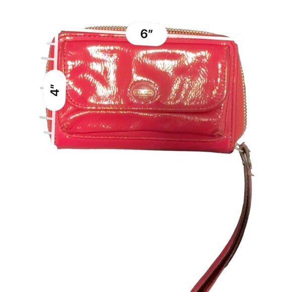 Authentic Coach Fuschia Pink Zippy Patent Leather Wallet Wristlet Cardholder