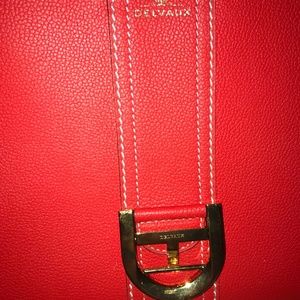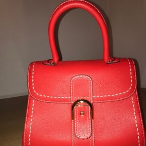 Authentic DELVAUX Brillant MM S Rodéo Surpiqué Contrast Topstitching Leather Red. Condition is Pre-owned. Shipped with Canada Post Expedited Parcel. 9/10 condition.