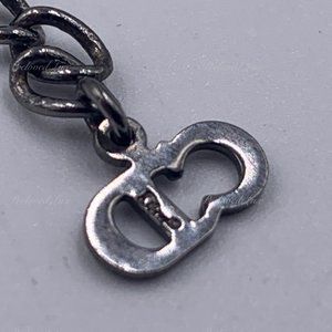 Authentic Dior Logo Metallic Black Bracelet with adjustable length 6.75"-8.75". Pendant: 0.75" x 0.4". Unique metallic black color bracelet. No box and no dust bag. Overall good condition, fine scratches noted. No tarnishing noted on the bracelet. We are not accepting offers. Thank you.