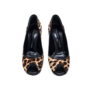 Step into fierce fashion with these Dolce & Gabbana Stiletto Heels. The leopard print design adds a touch of wild sophistication to any outfit. With their open toe style, you'll be strutting your stuff in style. Perfect for a night out or a day at the office. Get your paws on these beauties at our consignment shop today!
