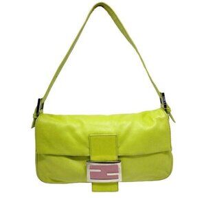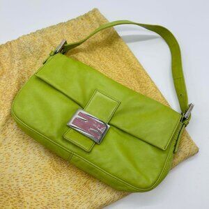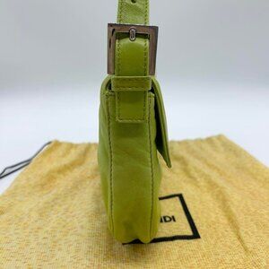 Authentic FENDI Mamma Bucket Baguette Lime Green Lambskin Flap Bag Purse