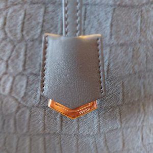 Rare grey pony hair leather Fendi Medium 3Jours tote with silver-tone hardware, dual leather shoulder straps.