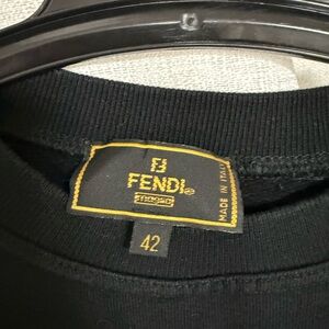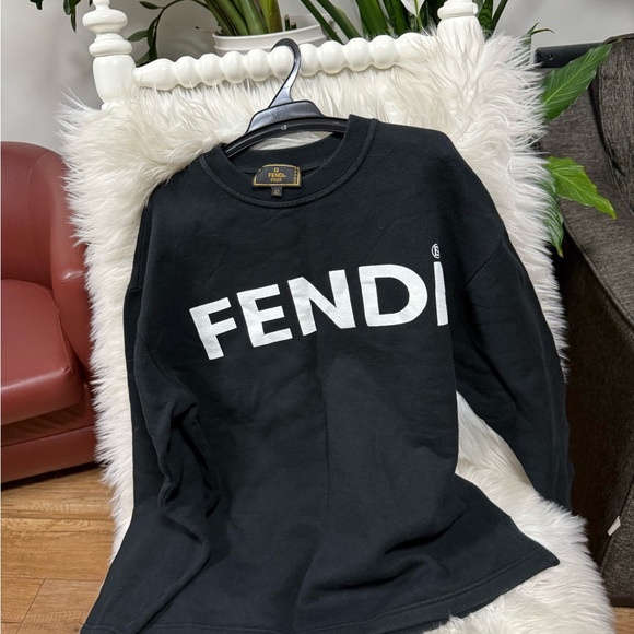 Elegant black crewneck with iconic Fendi label. Perfect for any occasion.