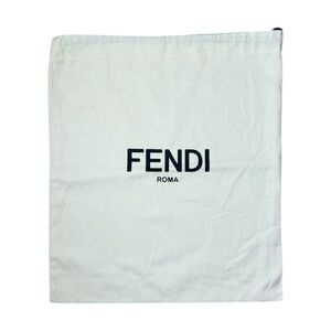 Original Fendi Roma dust bag in off-white cotton fabric with black logo print. Drawstring closure. Ideal as a replacement dust bag or for protecting handbags, shoes, or accessories.