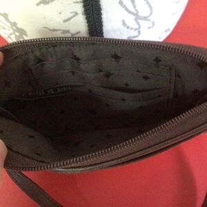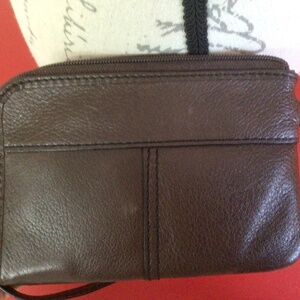 Authentic Fossil Leather Corner Zip Wristlet Wallet Clutch Brown Floral
