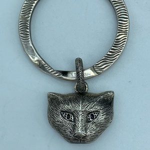In line with creative director Alessandro Michele's love for the animal kingdom, this Gucci pendant takes the shape of a majestic feline. Snarling slightly from its place at the bottom of a delicate engraved ring. It's crafted in Italy from solid sterling silver and given an oxidised finish to make it look like a carefully preserved antique.