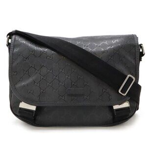 Authentic Gucci GG Imprime Monogram Medium Buckle Flap Messenger Bag Black Mens