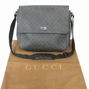 Authentic Gucci GG Plus Large Crossbody Bag Messenger Web Canvas Black Mens