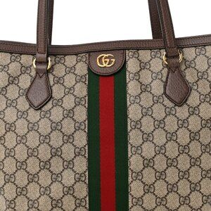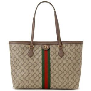 Authentic Gucci GG Supreme Ophidia Monogram Medium Shopping Tote Brown Tan Purse