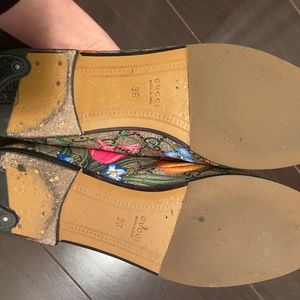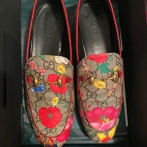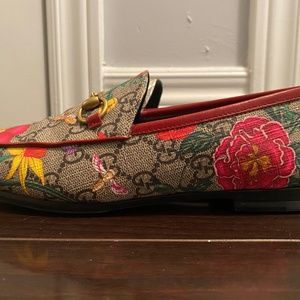 Selling these beautiful Gucci Horsebit floral mules in a size 36. In excellent condition, and paid $80 to put quality taps on the bottom of the shoe. There are no visible scratches, marks or flaws, except for a bit on the bottom of the shoe (as pictured). They have been worn a handful of times - sadly they are just a little too small for me. Original box and shoe bags are included. Feel free to reach out with any questions you may have.